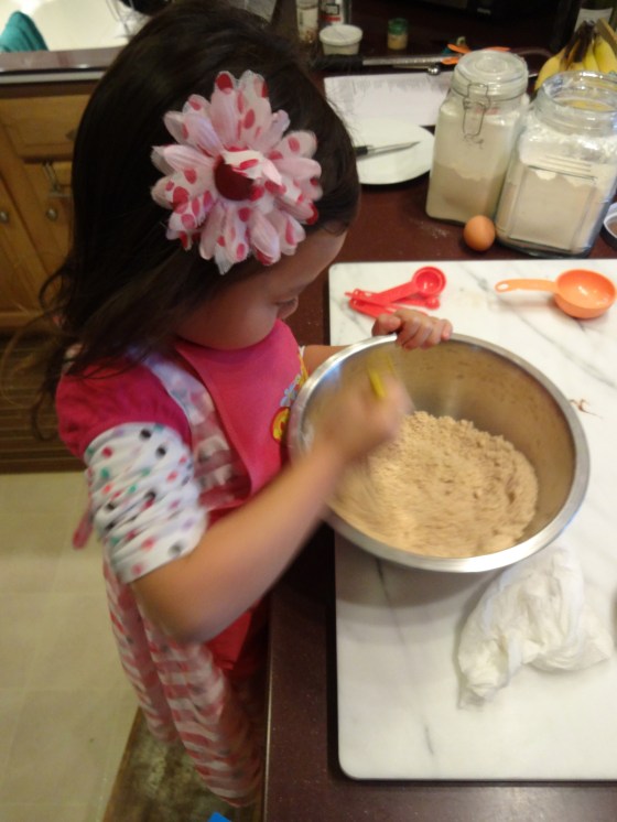 Our sweet little Lila, dressed-up in her pink princess dress and pretty polka dot barrette, rolled up her sleeves and volunteered to help “Chef Maman” (Chef Mommy) in the kitchen, so she could use her new favorite mini baking tools set received as a birthday gift from our thoughtful dear friends. Here’s our version du jour adapted from many different recipes tried over the past years and lots of instant feedback from my children who love to contribute with new suggestions, ideas and requests. Don’t let the long list of ingredients intimidate you, give it a try and create your own family favorite pumpkin bread too!
